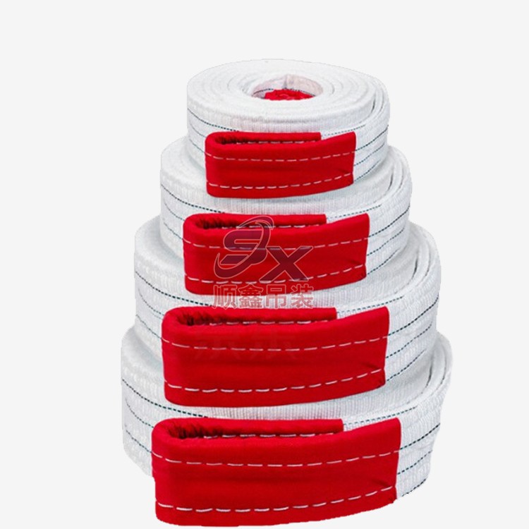 扁平吊帶采用4-8層縫制,整體結構嚴實,加密針織,工業(yè)縫紉機一次成型,避免多接頭導致拉力不均。加固吊耳,提升耐磨度,不易打滑,提升瞬間緩沖拉力。其接觸面較寬且平整,不易損傷被吊物。